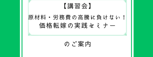 ○日 時 令和7年12月2日(火) 午後2時00分~午後4時00分(2時間) ○場 所 東郷町商工会館 2階 ○テーマ 原材料・労務費の高騰に負けない!価格転嫁の実践セミナー 利益率を改善して事業収益を確保しよ … 続きを読む 【講習会】価格転嫁の実践セミナー